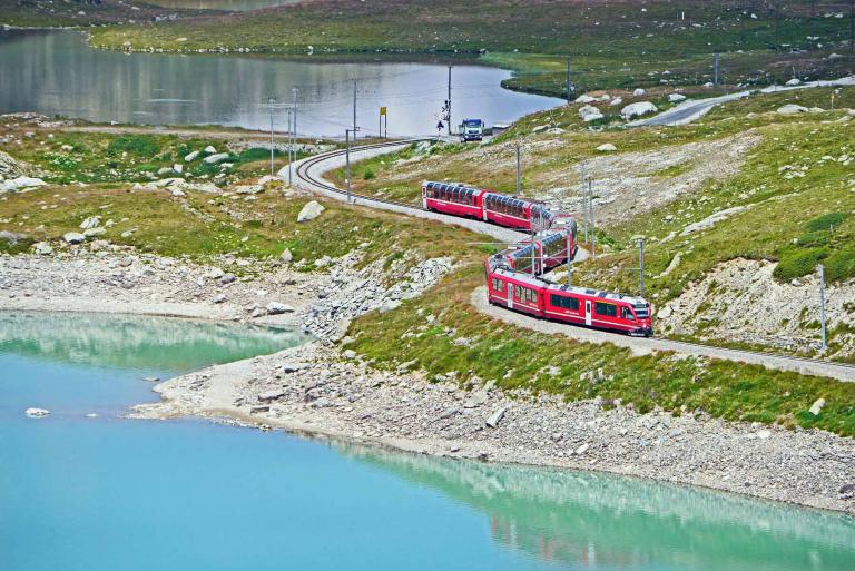 We invite you for a "postcards roundtrip" through Swiss Alp Mountains. The legendary and confortable red "Glacier Express Train" in First Class is the must to see all the best of the fascinating mountain and lake landscapes from Switzerland.