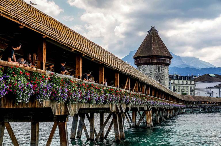 The historical city of Lucerne lies in Switzerland in the heart of Europe, located right on Lake Lucerne. You will find eveything in Lucerne: the lake, the mountains, the city. See the famous Chapel Birdge, with its gabled paintings of old battles, and the adjacent quarters with little streets in the old town.